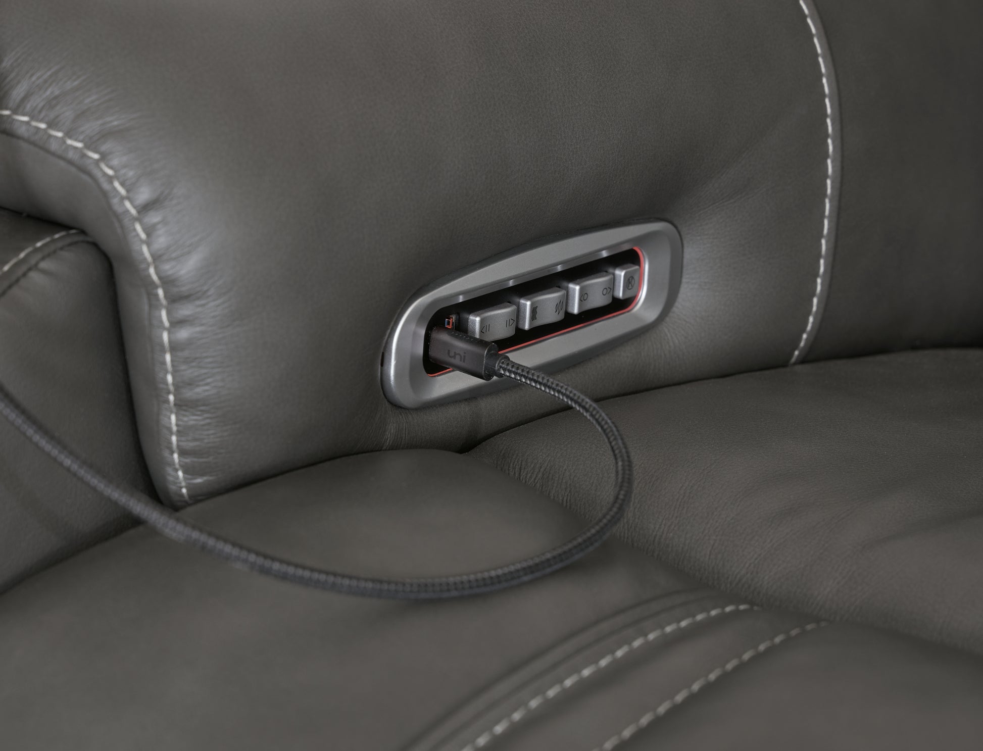 Isn’t it time to discover a whole new level of relaxation? This power reclining sectional sofa is a divine merger of fabulous function and sleek transitional style. One-touch reclining, adjustable headrests and USB charging, coupled with supple leather and skillfully matched faux leather, kick your leisure level up several notches. And the indulgence doesn't end there; heat and massage functions target multiple zones from head to toe. This is more than just a sectional—it’s your personal comfort command center.