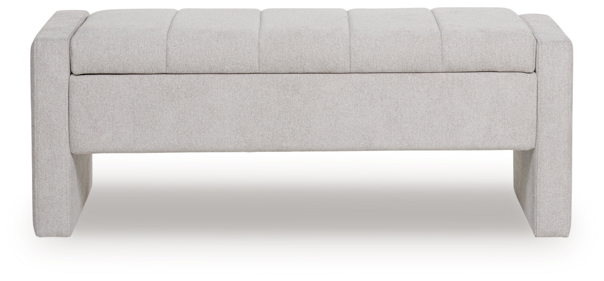 Whether gracing an entryway or sitting pretty in a main living area, this comfortably cushioned upholstered storage bench is packed with possibilities. Its clean, unfussy silhouette strikes a highly contemporary pose. Lift the hinged seat to reveal ample storage for your pillows, throws and everything in between.