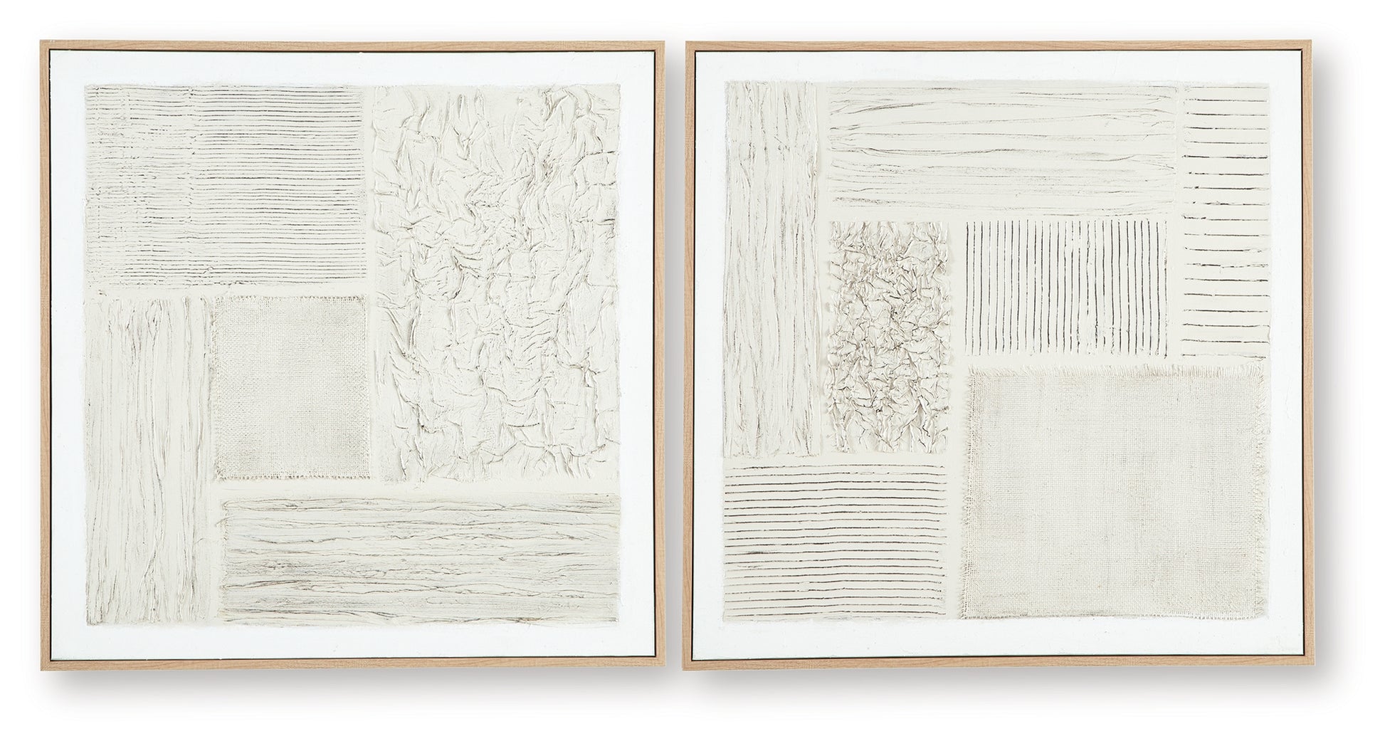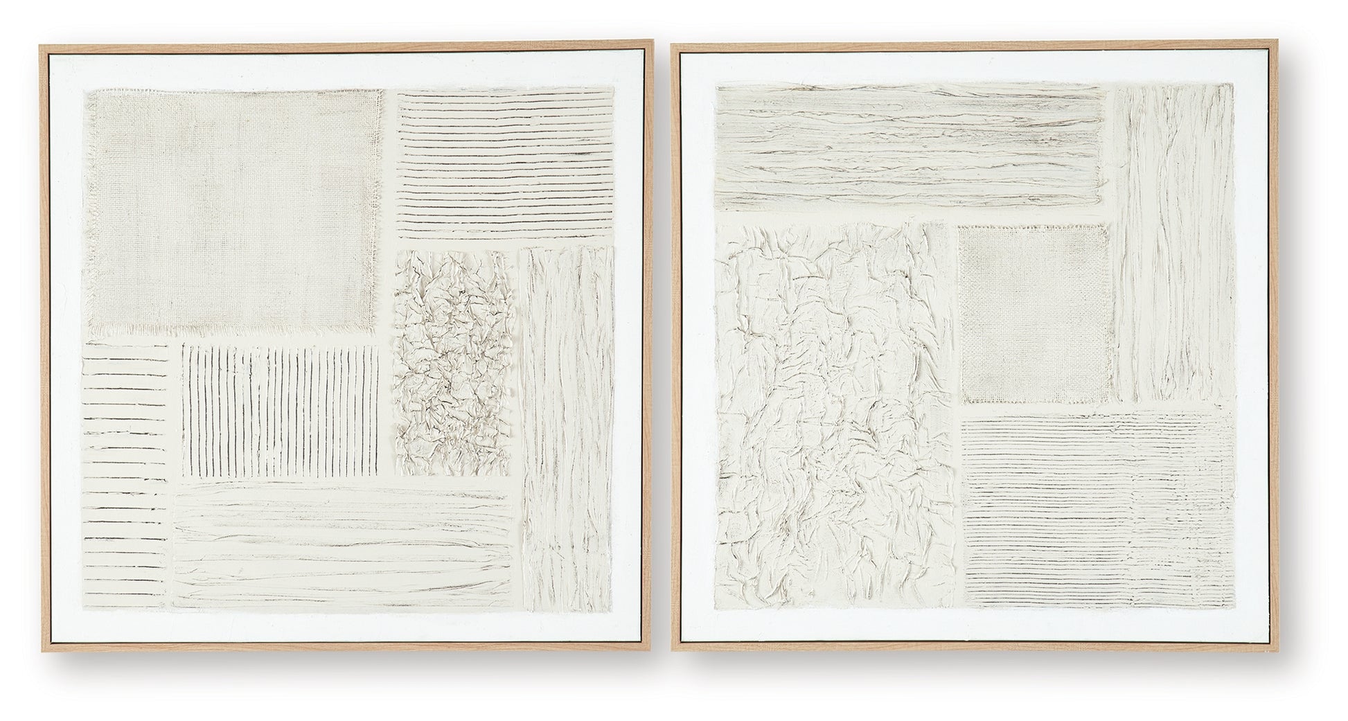 This subtly dynamic wall art duo lends an air of movement to your decor. Neutral hues, meticulously crafted with hand painted details, come together in an abstract geometric design. Layered fabric embellishments add textural appeal. Stage the pieces together or separately—with multiple hanging options, this set is easily styled to suit your space.
