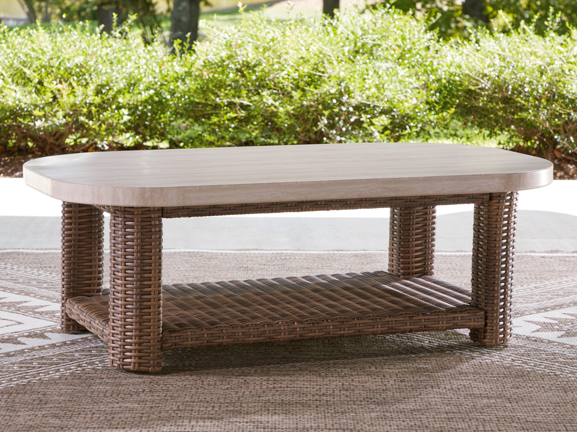 - Resin wicker brings all-weather durability to a traditional woven wicker look