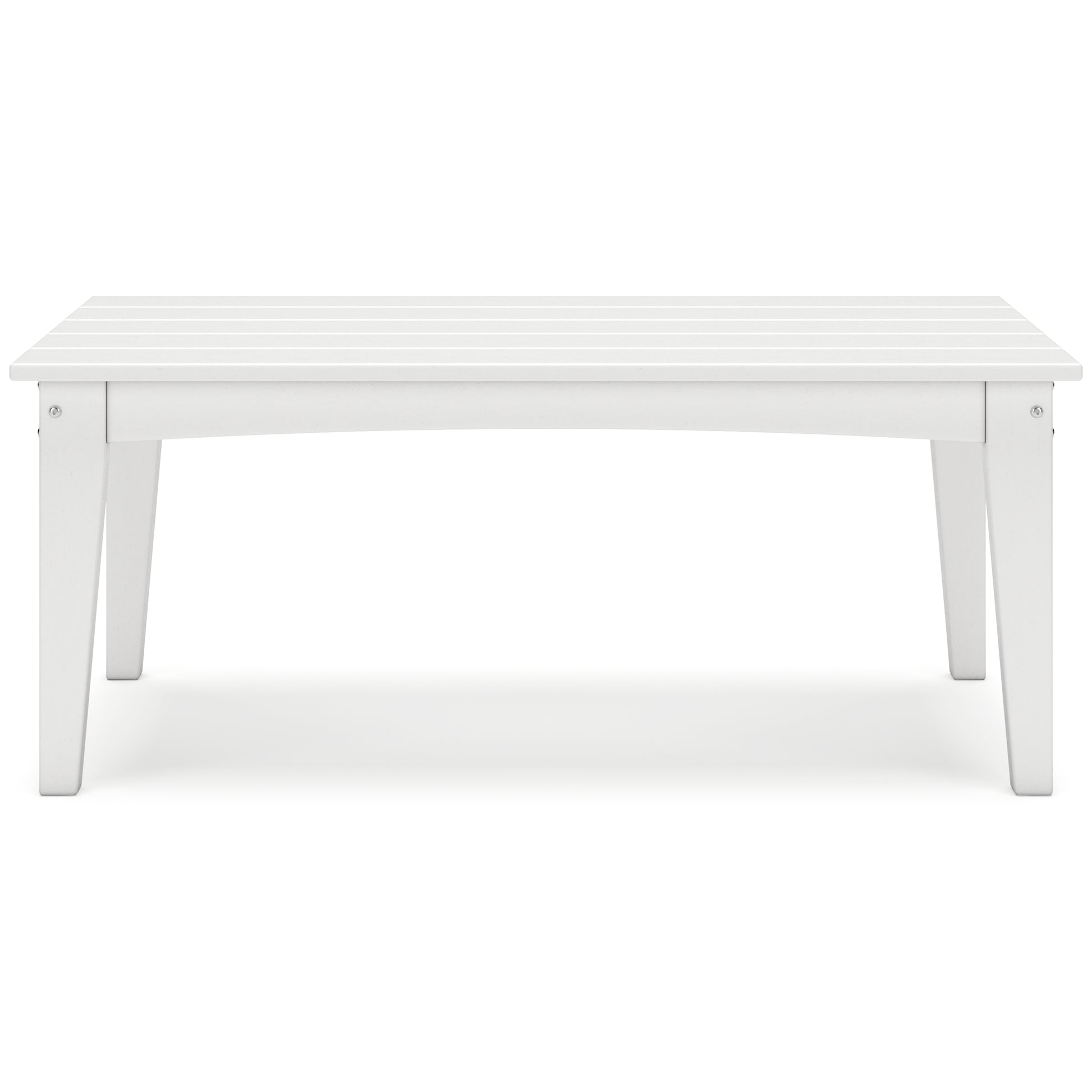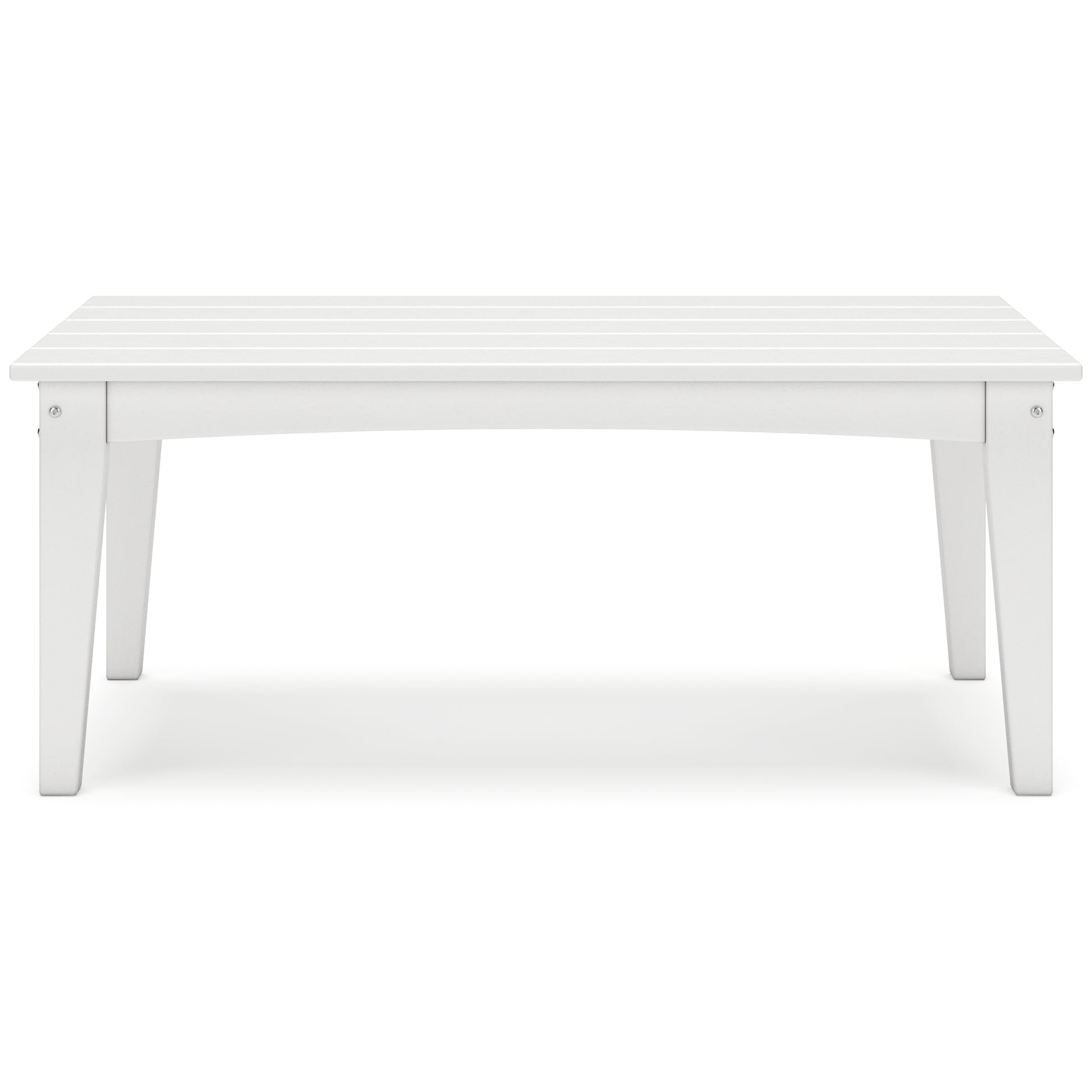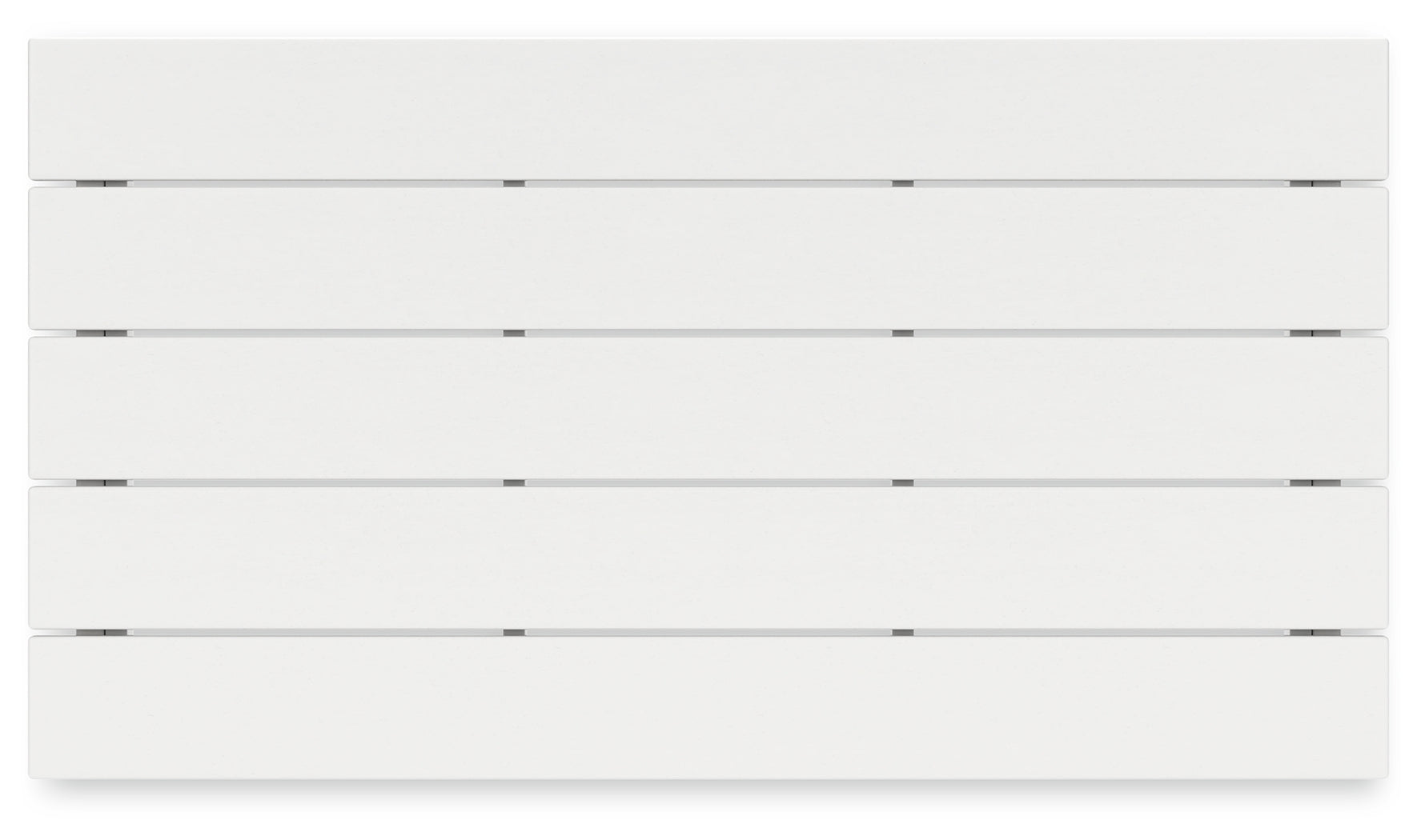 Drift into outdoor entertainment bliss with this coffee table. Dressed in a bright white for a fresh feel, it weathers sunny summer days and cozy winter nights with durable MEGA-TUFF® HDPE material. When it comes to form and function, the table's rain-shedding slatted design simply goes with the flow. Use it to hold outdoor decor, drinks or snacks.