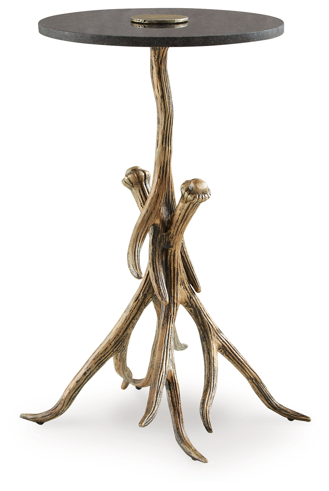 Elevate your living space with the captivating presence of this accent table. Rustic meets contemporary in the nature-inspired statement piece, which effortlessly delivers unique character. Faux antlers and a black marble top add a touch of elegance and character that's sure to make a lasting impression.