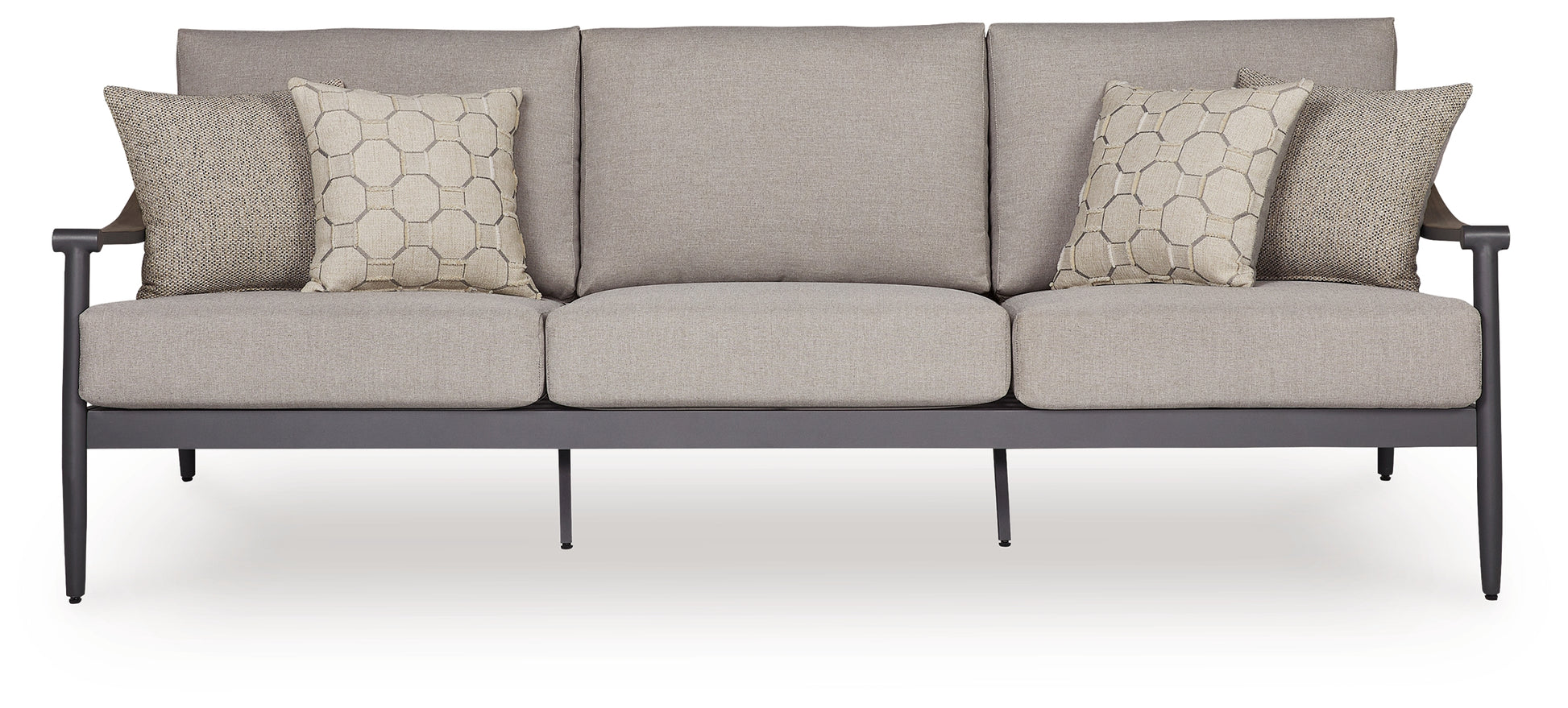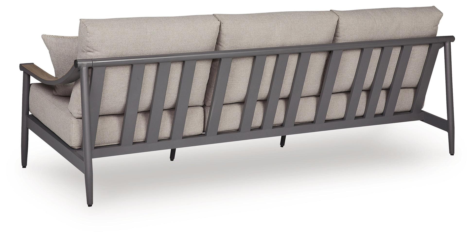 A refined marriage of style and durability, this outdoor loveseat adds contemporary flair to your porch or patio. Wood tones and shades of gray lend a versatile, neutral appeal. And this loveseat is built to last, thanks to its rust-resistant frame and cleanable, UV-resistant fabric.