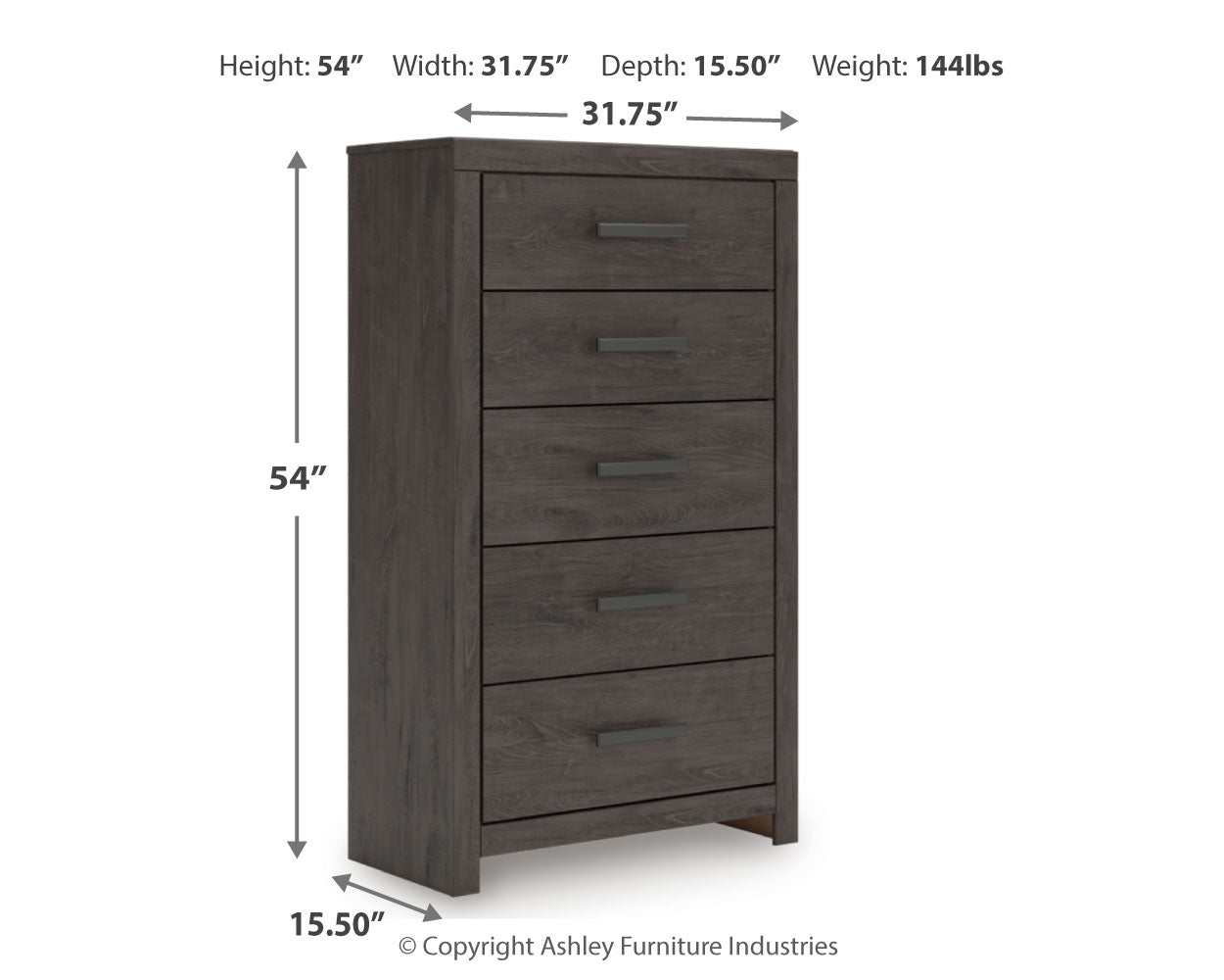 Five Drawer Chest | 32" | 15" | 54" |