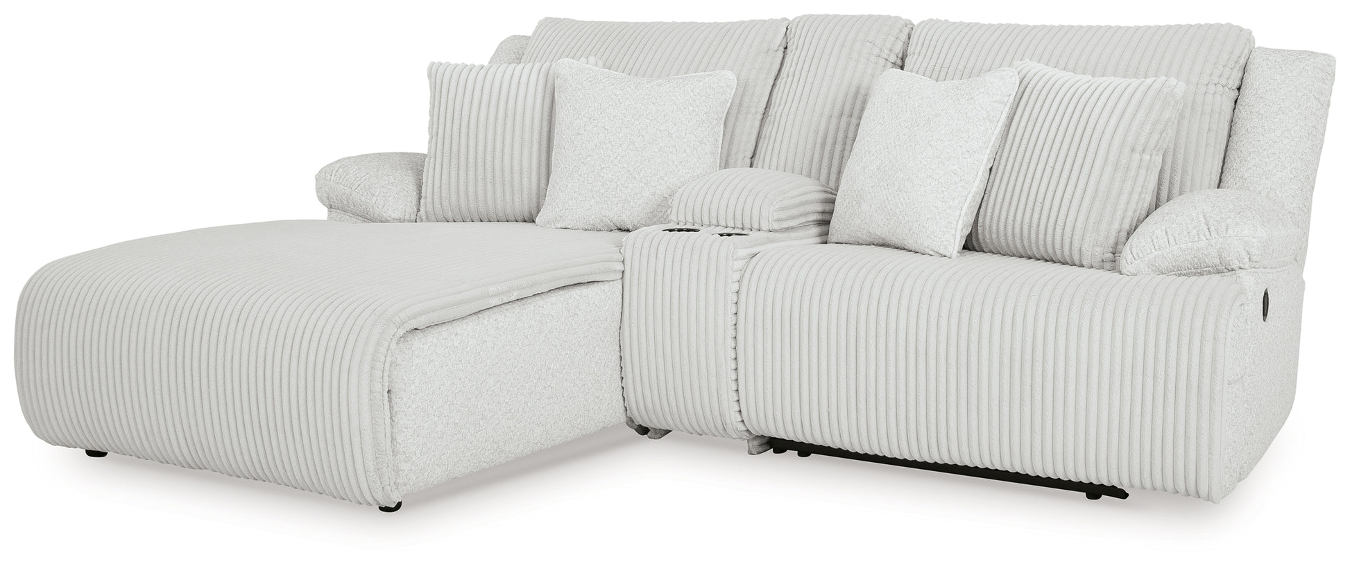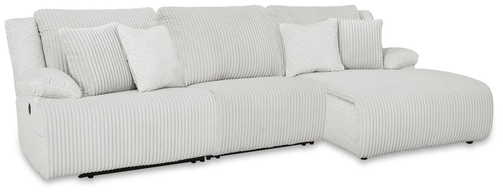 - Includes 3 pieces: left-arm facing recliner, armless recliner and right-arm facing press back chaise